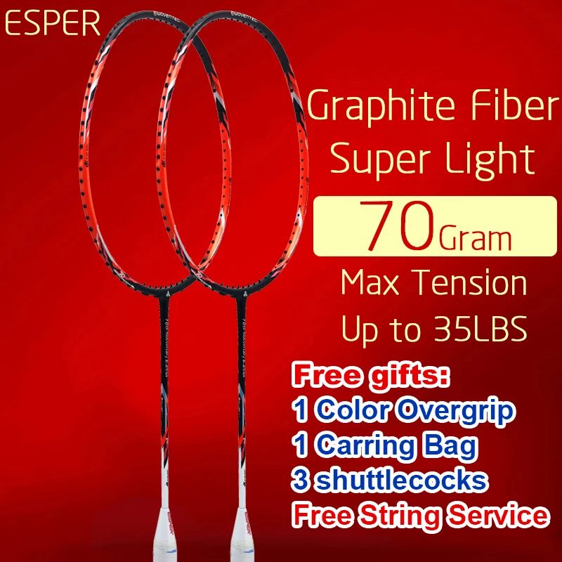 ESPER 70Gram Badminton Racket Carbon Fiber Lightweight Racquet Graphite Professional Offensive With